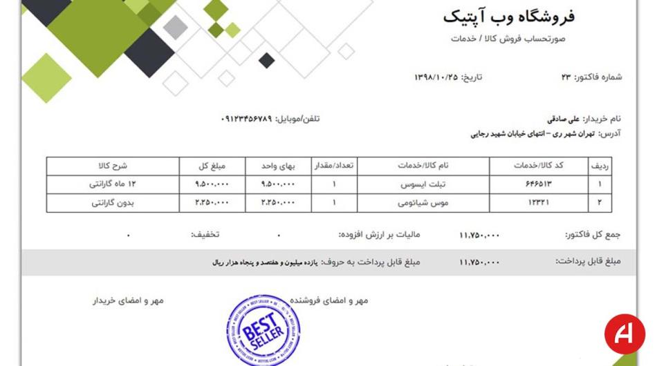 سیستم صدور فاکتور حرفه ای یکی از اولین اقداماتیه که هر فروشنده حرفه ای باید در اولویت کارهاش قرار بده؛ چرا که با این کار به بالا رفتن پرستیژ کاری و اعتبار کسب و کارش کمک کرده و همچنین باعث جلب اعتماد و رضایت مشتریاش میشه.
